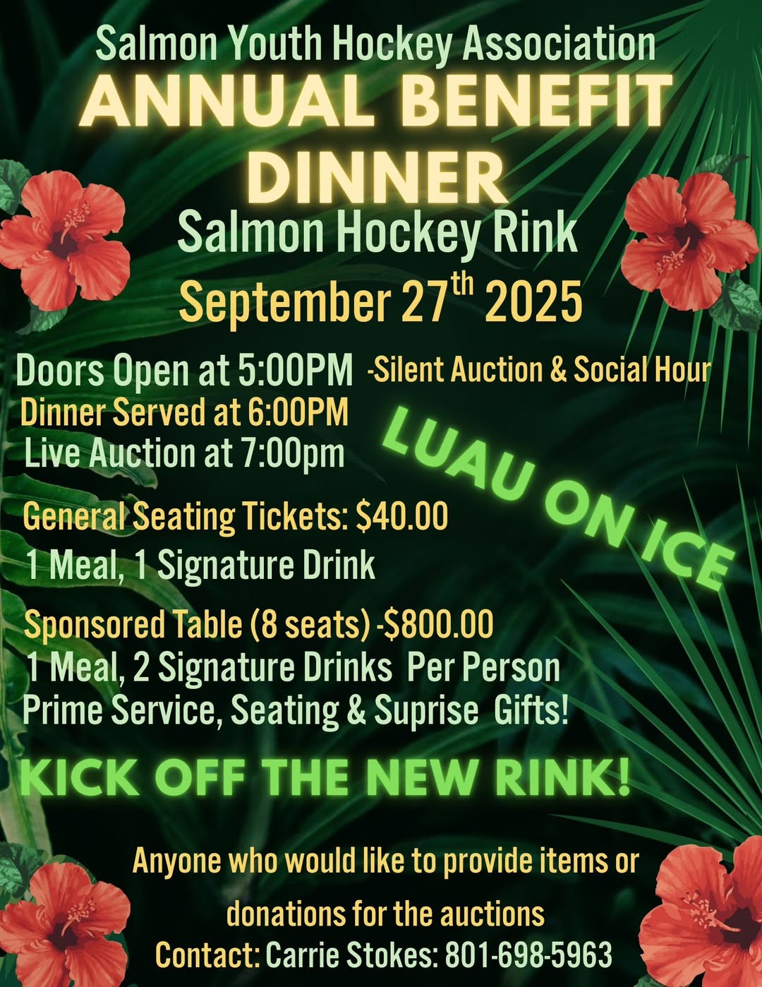 Salmon Hockey extends a heartfelt thank you to the entire community for your incredible support! This year’s benefit dinner raised over $20,000, and to top it off, the association was thrilled to receive a $25,000 grant from the Lemhi Valley Community Foundation—officially closing the funding gap for the rink upgrade project. None of this would have been possible without the generous backing from supporters both near and far!